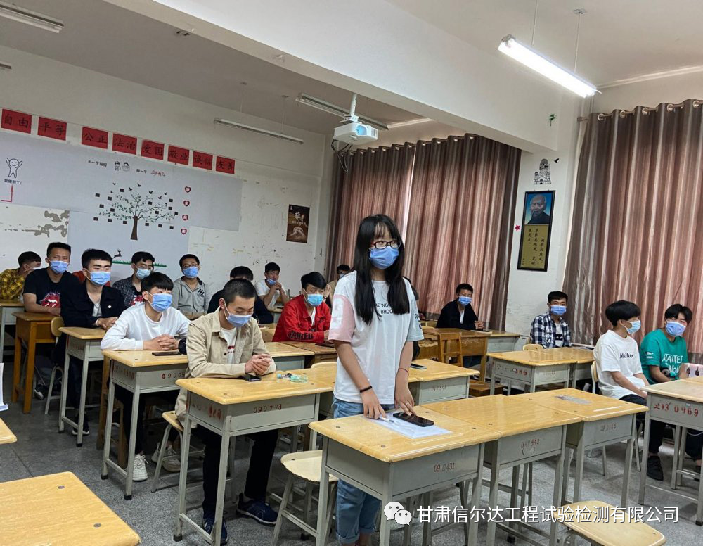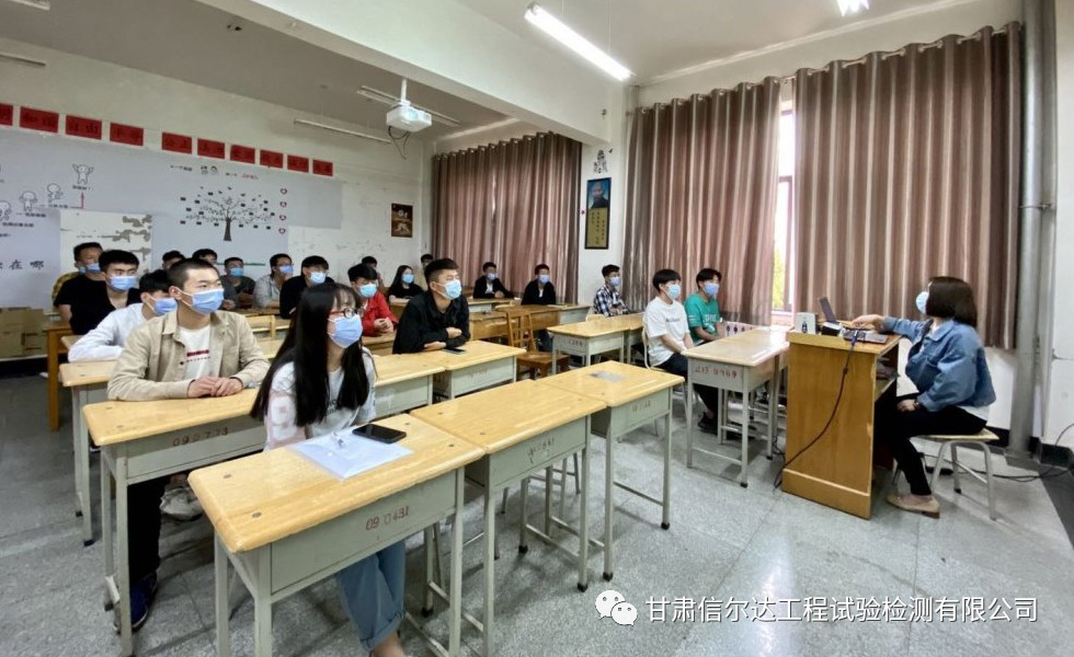 5月20日,伴着夏日的风,憧憬的梦,甘交院校园宣讲日如期而至。1号教学楼305教室内座无虚席,检测、道桥、高管、造价等专业齐聚,华邦信尔达检测公司招聘宣讲就此拉开序幕。通过企业宣传片观看、宣讲、PPT企业展示以及现场答疑等环节,让同学们对公司有了初步认识和了解,会后有24名实习生与我公司签订了实习、就业协议,同时公司向学院老师和同学们赠送了口罩等防疫物资。