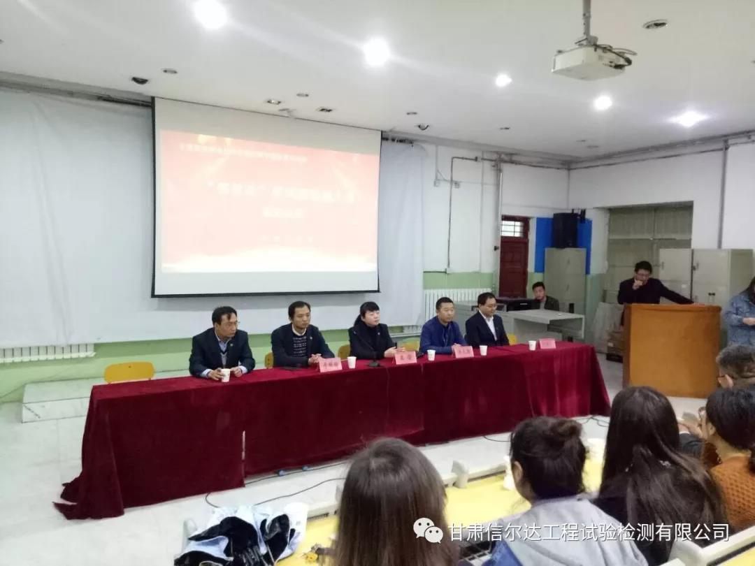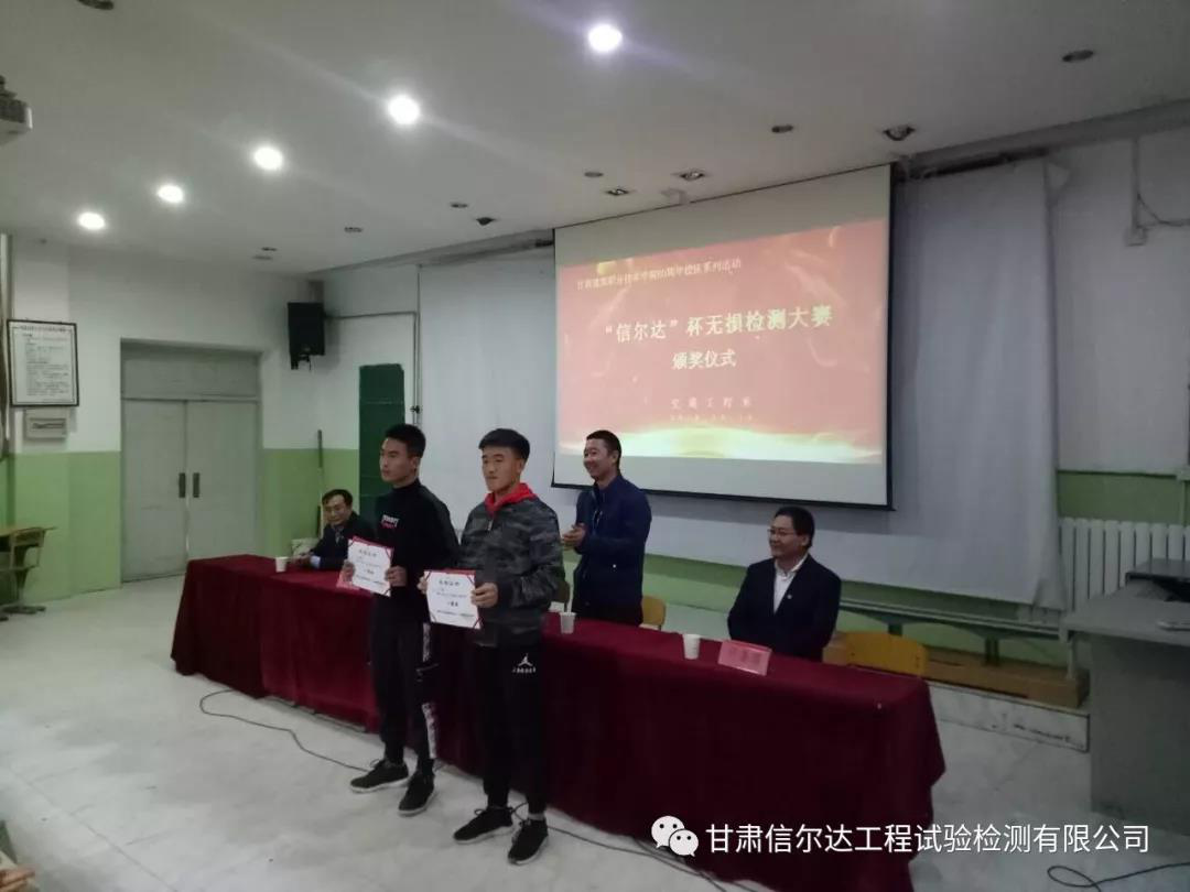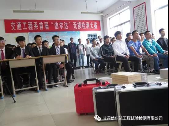近日,由甘肃建筑职业技术学院主办,交通工程系承办,甘肃信尔达工程试验检测有限公司协办的首届“信尔达”杯无损检测大赛在甘肃建筑职业技术学院开幕。甘肃信尔达工程试验检测有限公司总经理胡天翔、总工程师李全忠、交通工程系主任王荣、团支部书记张宇龙出席开幕式,系教研室教师、信尔达检测中心和参赛选手一起参加了开幕式。开幕式由交通工程系杨鹏飞老师主持。