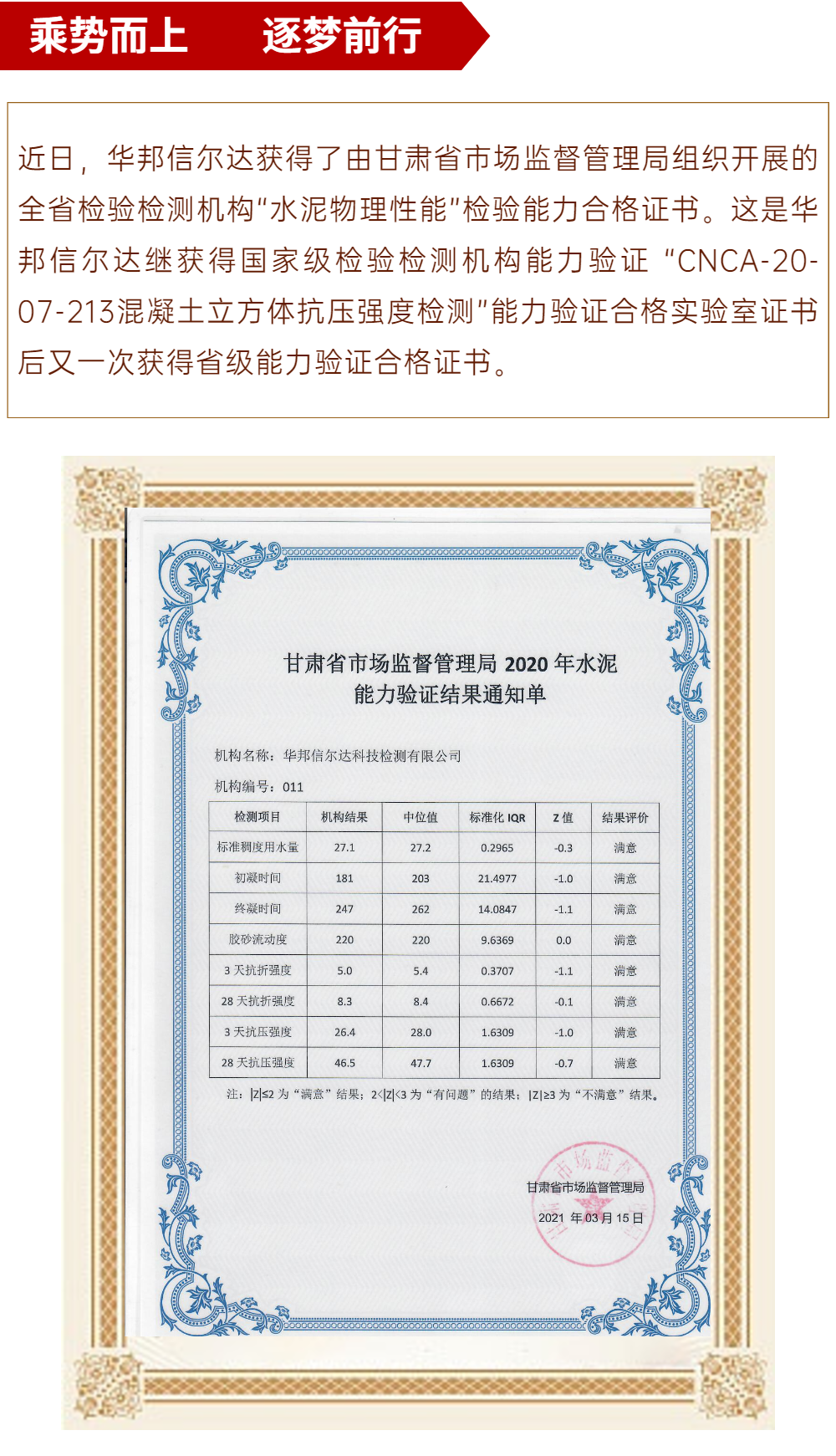 华邦信尔达再获“能力验证合格”证书